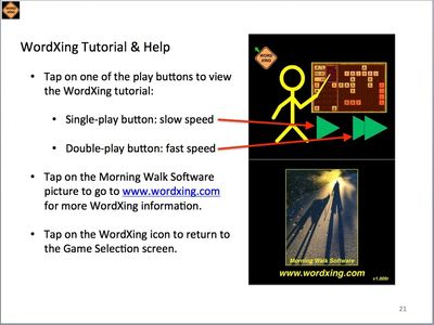 WordXing includes a live tutorial (touch the "?" icon) that demonstrates: